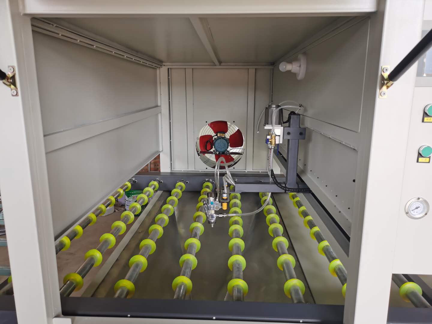 廣泛用于晶瓷畫(huà)、裝飾畫(huà)、相框、玄關(guān)三聯(lián)畫(huà)、高光移門(mén)、瓷磚背景墻、塑料件、PVC板、塑鋼型材、不銹鋼板、櫥柜木板、竹木纖維板、護墻板、工藝品、人造石等各種單面或多面產(chǎn)品,同時(shí)帶有凹凸挖槽造型產(chǎn)品均可涂裝(可配整線(xiàn)及工藝),可噴涂各種AB膠、水晶釉、UV光油、UV涂料、各種水性漆、色漆、各種樹(shù)脂等材料,該設備體積小,制作精良,移動(dòng)方便。